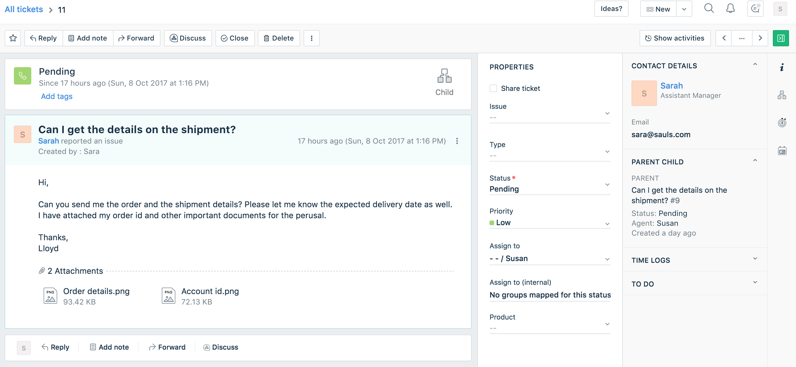 If the Parent and Child tickets are on different groups, granting global access to agents would help them track the progress of all the Parent and Child tickets including visibility of the private notes added.