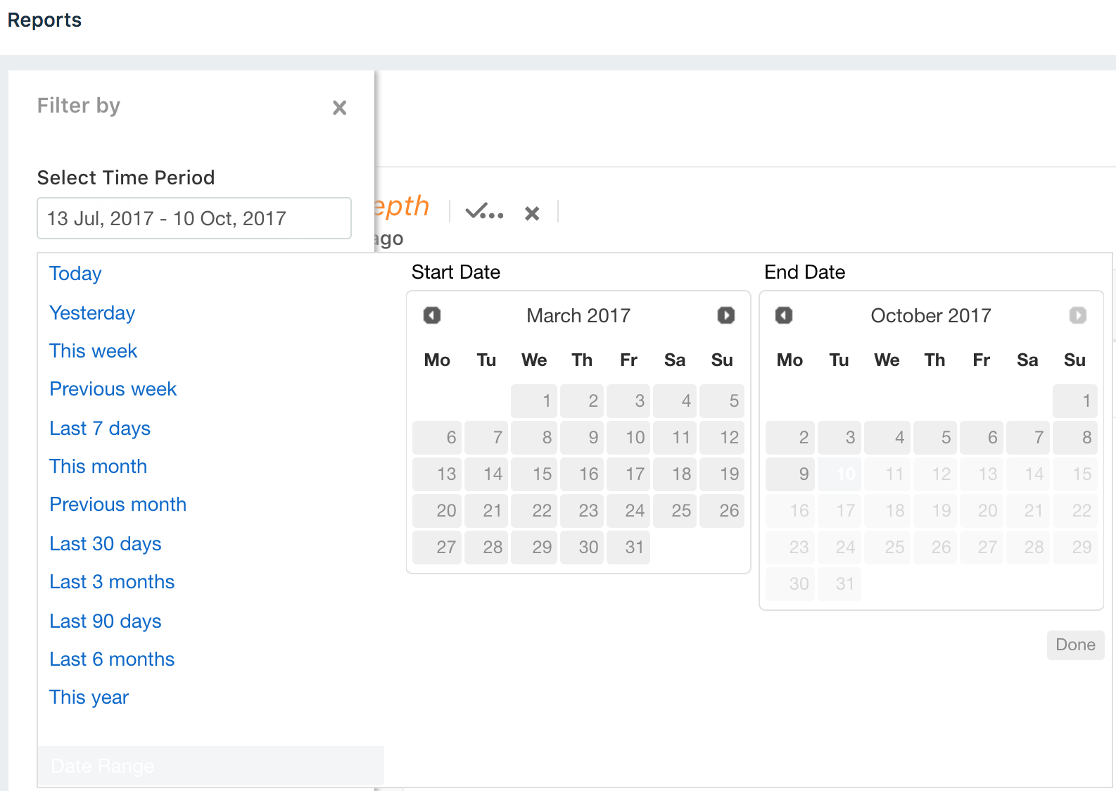- Based on a particular time period or a custom date range. This will help you understand your helpdesk metrics on a day-to-day basis as well as help keep an eye on overall performance.